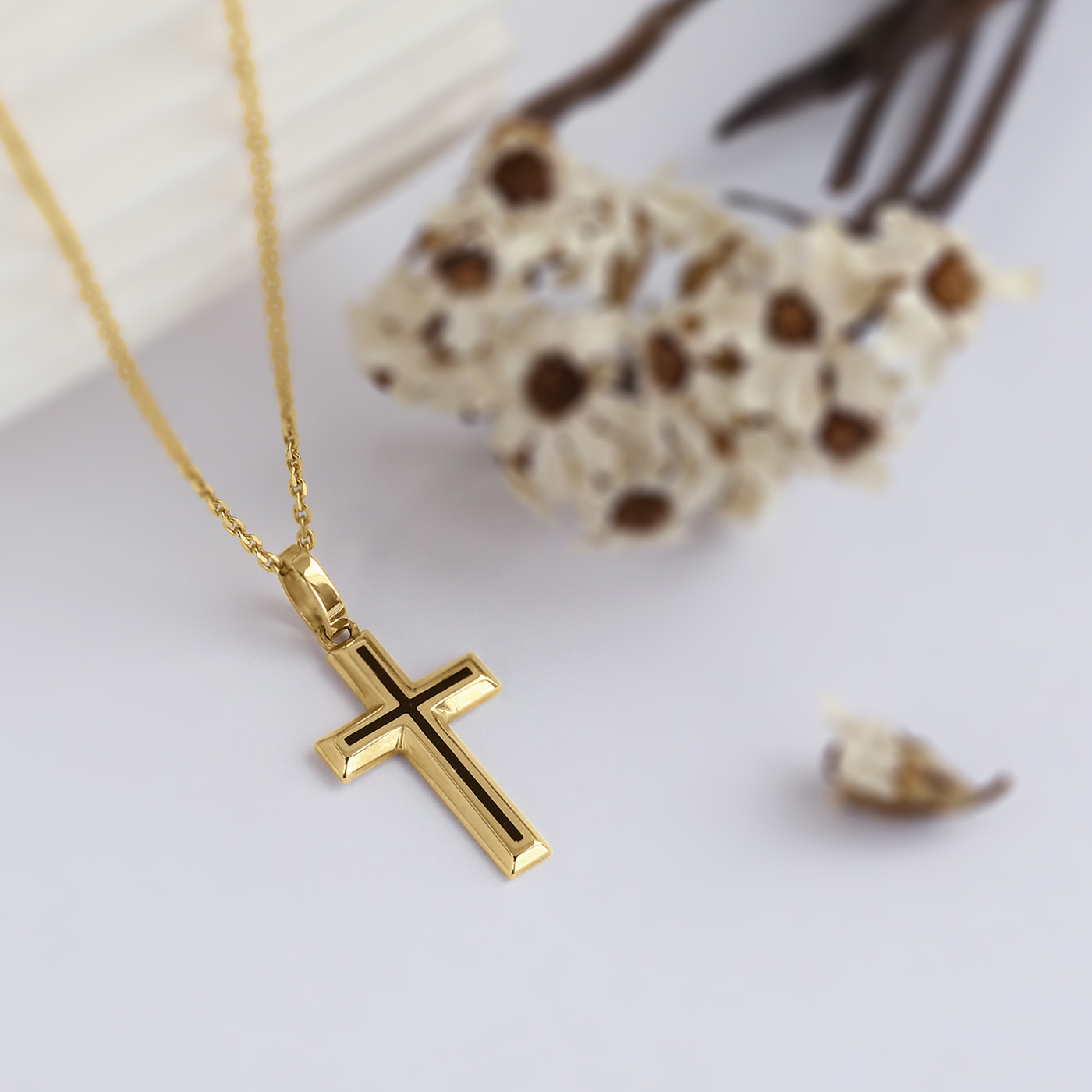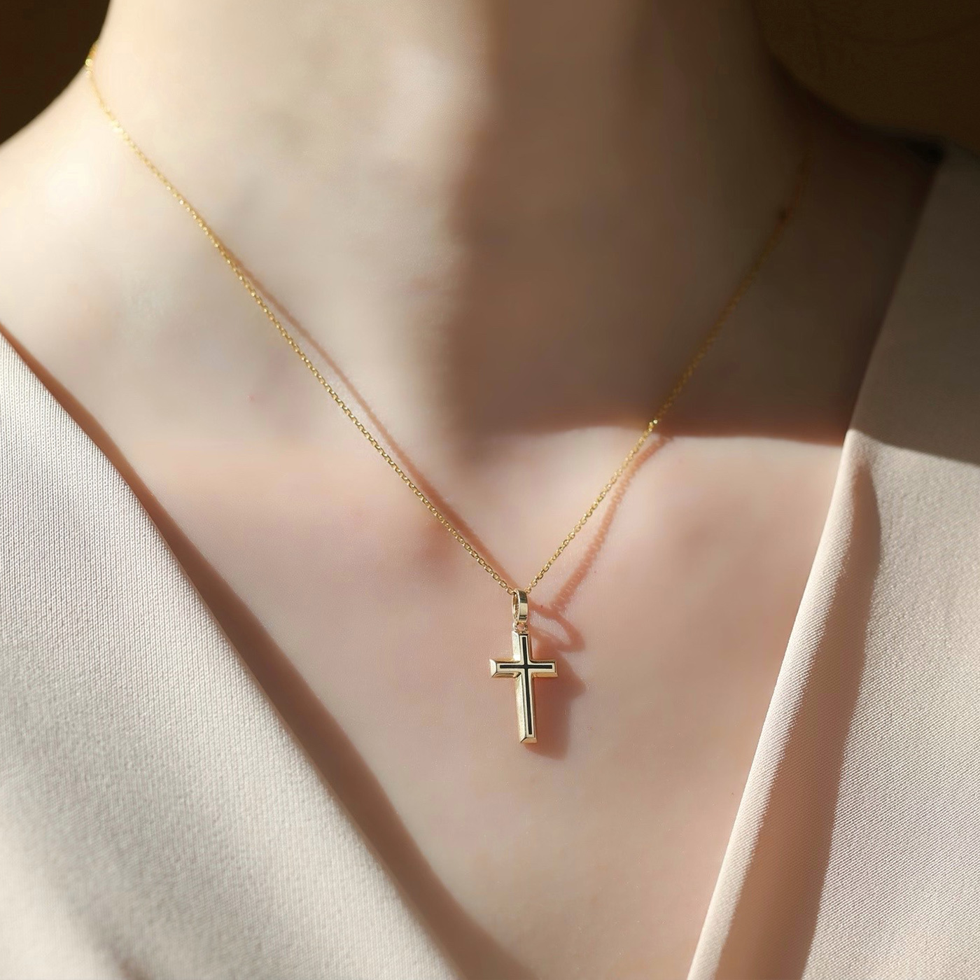 黑色十字架 — K金項鍊 (女款)