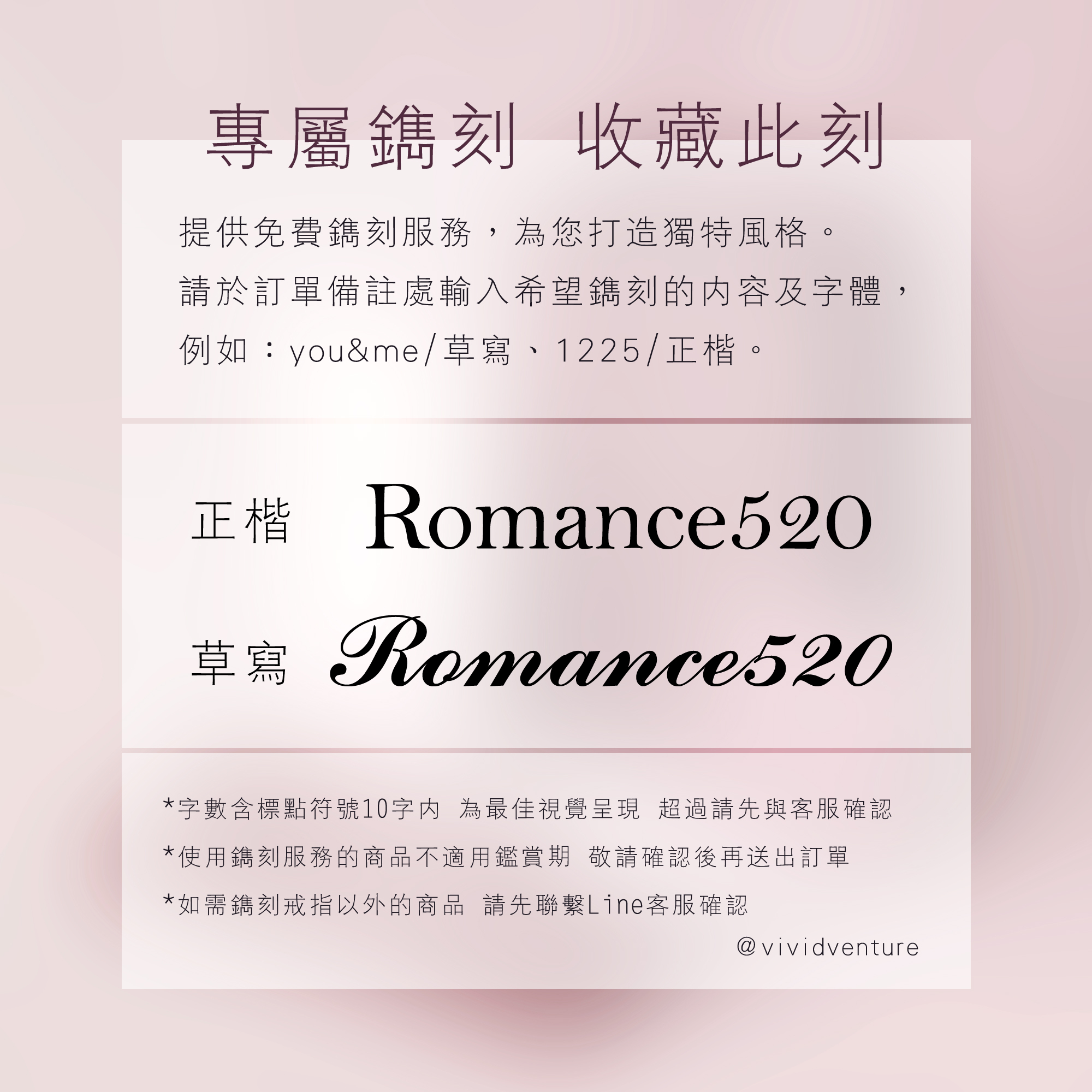 專屬鐫刻:正楷/草寫 免費刻字服務