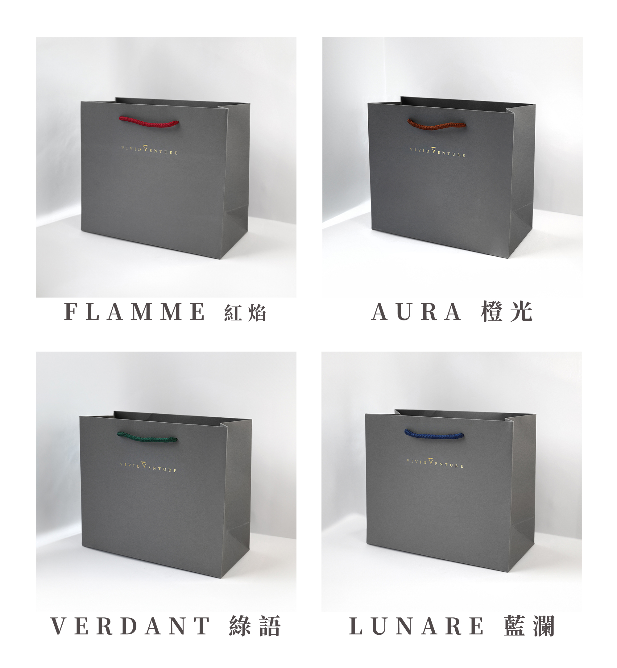 客製包裝:FLAMME 紅焰 AURA 橙光 VERDANT 綠語 LUNARE 藍瀾 NOIRIS 黑嶺