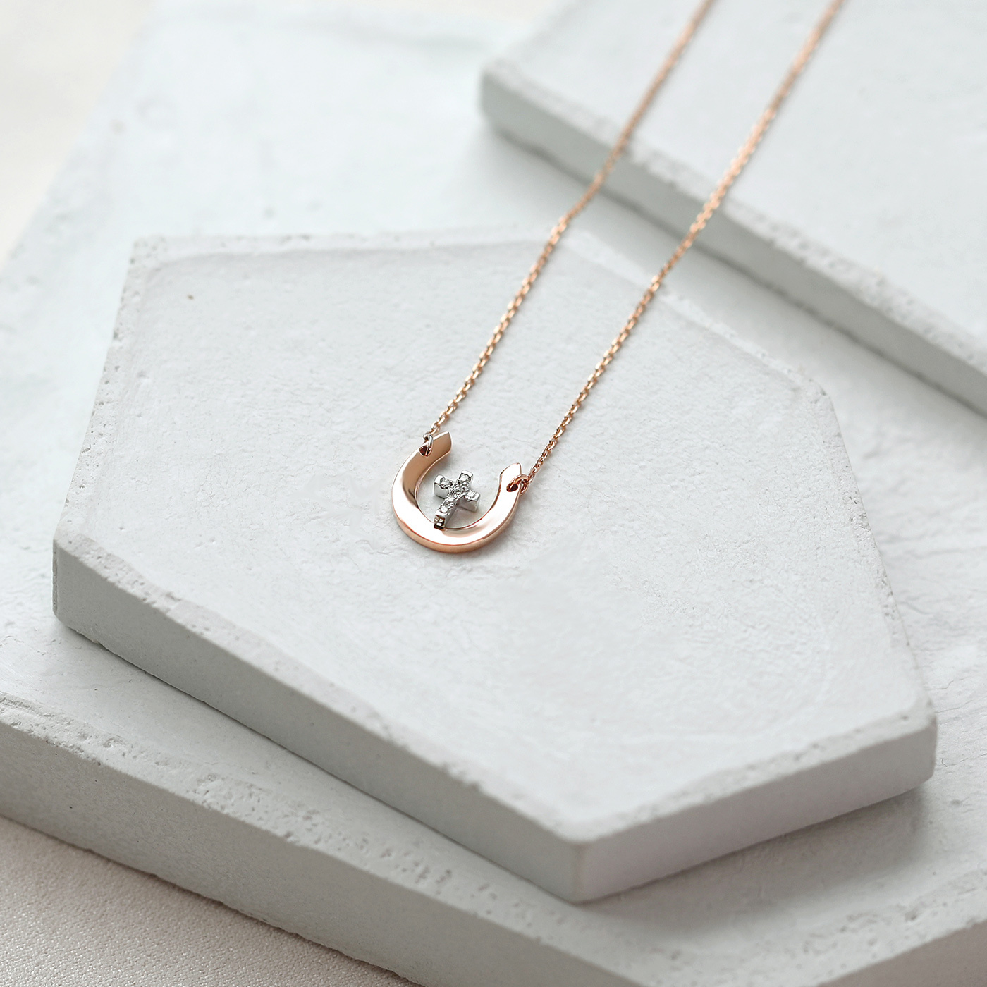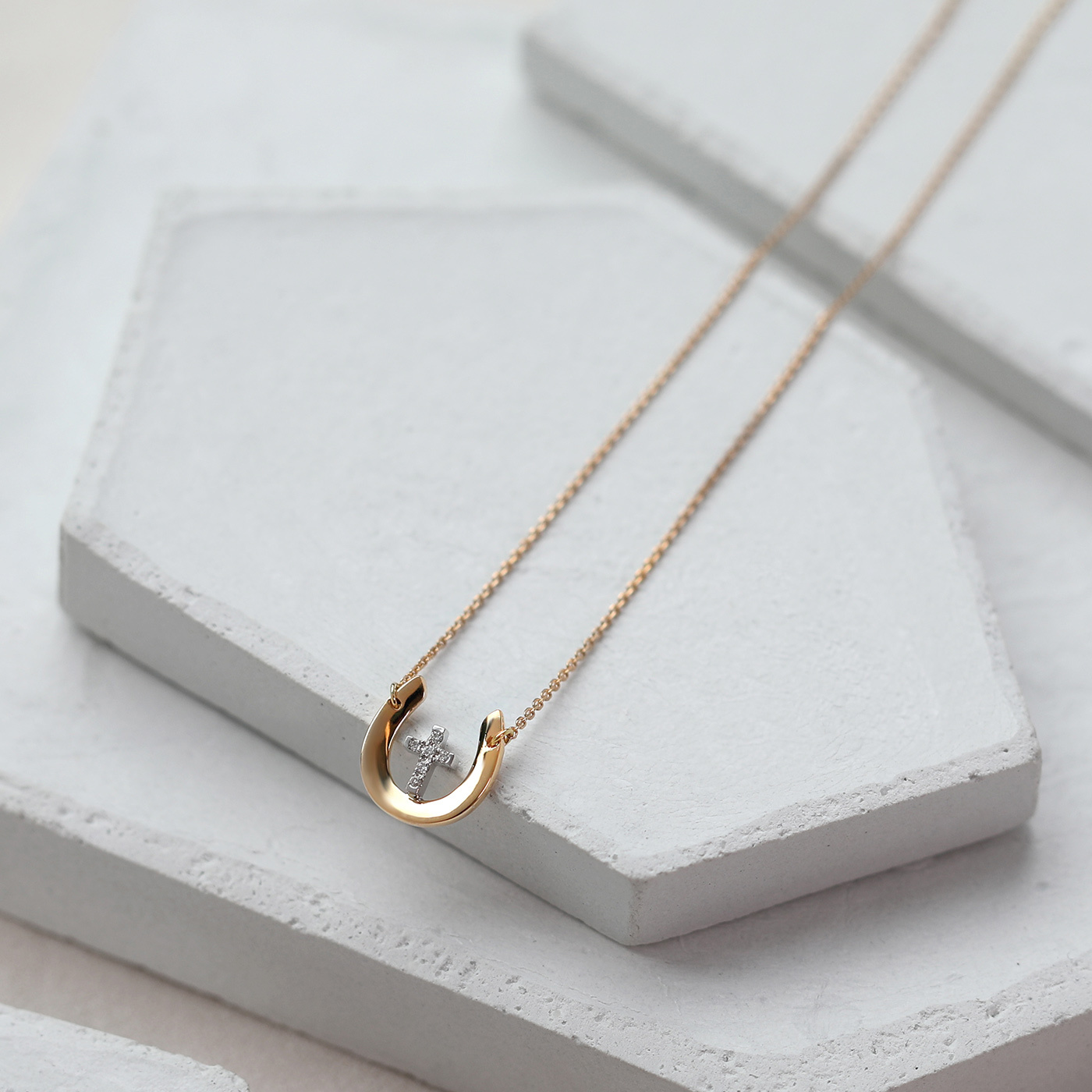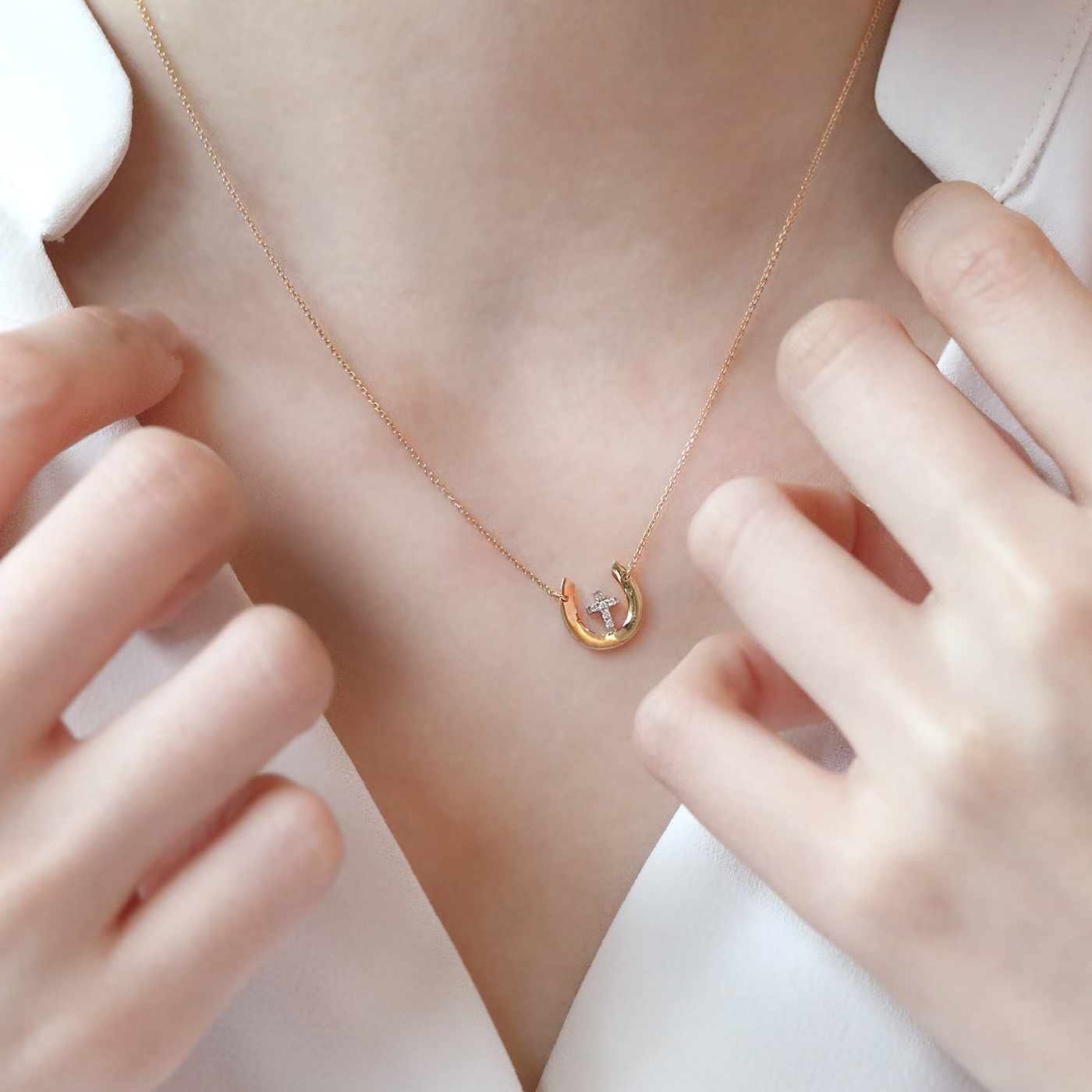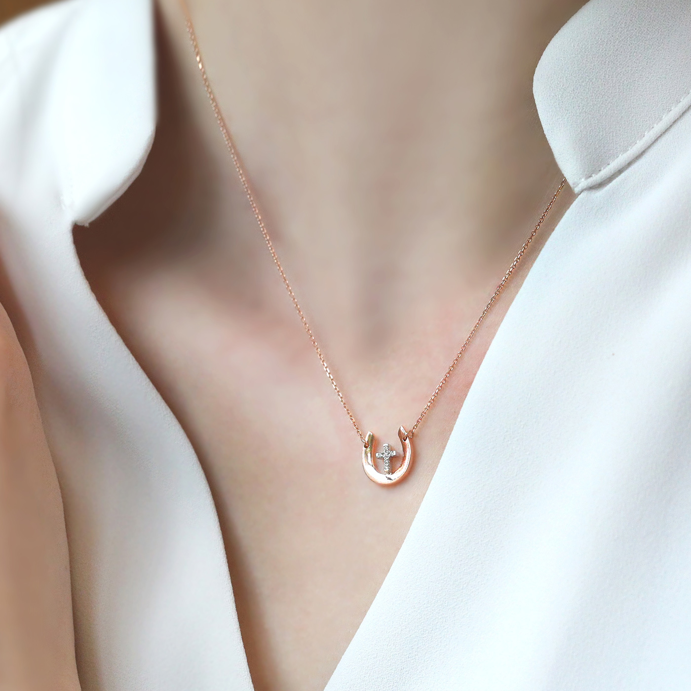 幸運馬蹄鐵 — 2分十字架鑽石項鍊